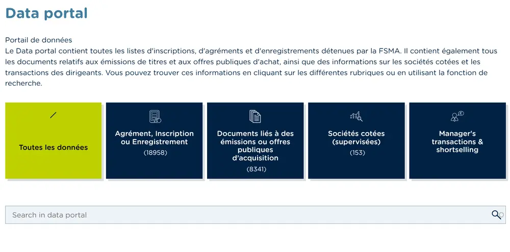 Voici le lien vers la FSMA qui vous permettra de vérifier si un prêteur ou intermédiaire est référencé dans le registre de la FSMA et autorisé à exercer en Belgique : https://www.fsma.be/fr/data-portal